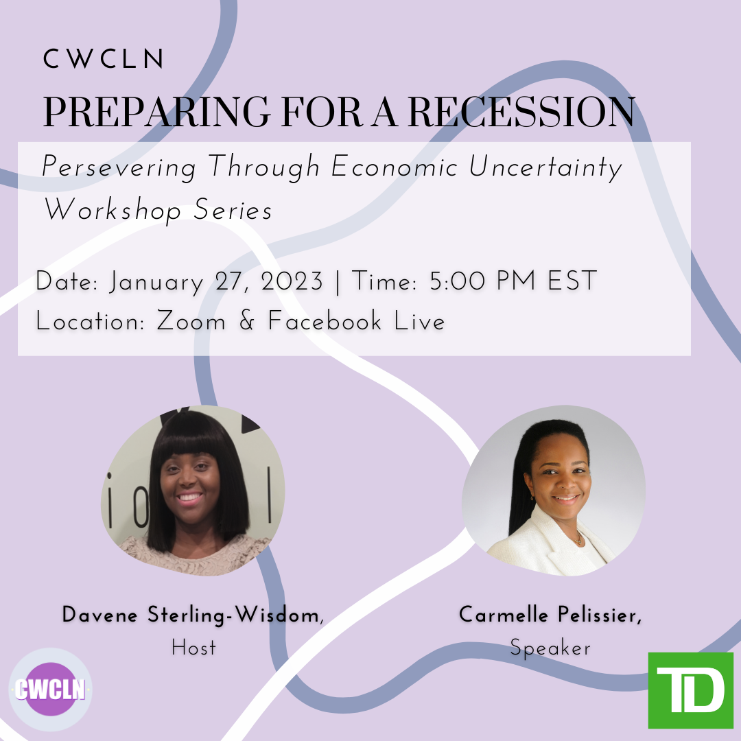 Join us on January 27 at 5 PM at CWCLN Director Davene Sterling-Wisdom and guest speaker Carmelle Pelissier discuss and share tips and tools that could help your finances during a recession.